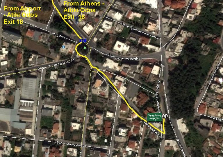 from Nomismatokopio Metro station (Blue Line) 304, 305, 316, (every 30') from Doukissa Plakentia Metro station (Blue Line) 319 (every 30') 304 Bus stop 440007 Gipedo (walk 400m.) - 305, 316 & 319 Bus stop 440009 Vrysi (walk 100m.)