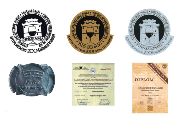 Distiction speciale 2006 Georgas Family - Vin de Liquer 2004 Pour la categorie au vins blancs issue de resins biologique ayant obtenu la milleure notation a la 6eme Concour Internationale du Vin de Thessalonique, et 16eme a la liste de evaluation generale parmi 670 les etiquettes de la concurrence 2006 Vin de Liquer 2006 - Gold Prix Vin biologique competition DIO 2008 Vin de Liquer 2007 - Gold Prix Vin biologique competition DIO 2009 Metaille d' Or Concour Internationale du Vin biologique 2010 Wine System AG Germany