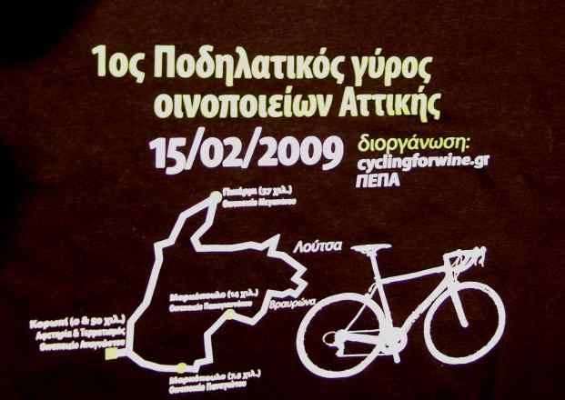 Εγινε την κρύα αλλά Κυριακή 15 Φεβρουαρίου 2009 υλοποιόντας την ιδέα του πολυπράγμωνα οινόφιλου ποδυλάτη Θέμου Νικολετόπουλου www.cyclingforwine.gr φέρνοντας σε πιό άμεση επαφή δύο μεγάλες αγάπες, τo ποδήλατο και το κρασί. από την Ποδηλατική Ένωση Παλαιμάχων Αθλητών www.pepa.gr και την Ένωση Οινοπαραγωγών Αμπελώνα Αττικής www.enoaa.gr,