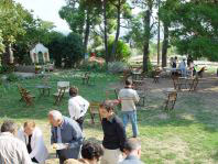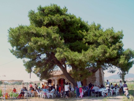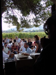 το μεσημέρι για τους επισκέπτες κάτω από τον μεγάλο πεύκο στον αμπελώνα