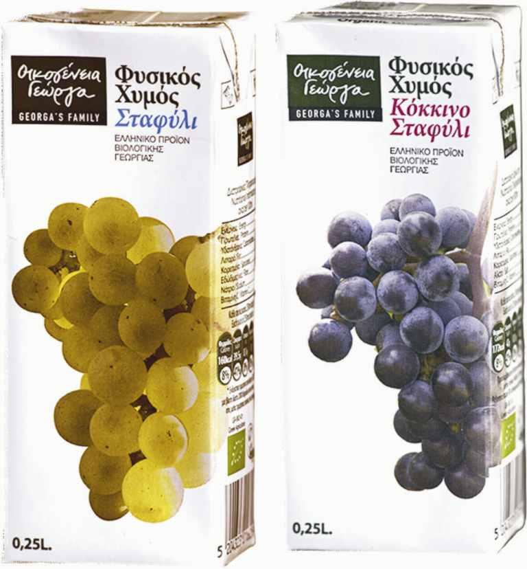 100% Φυσικοί χυμοί βιολογικού σταφυλιού,