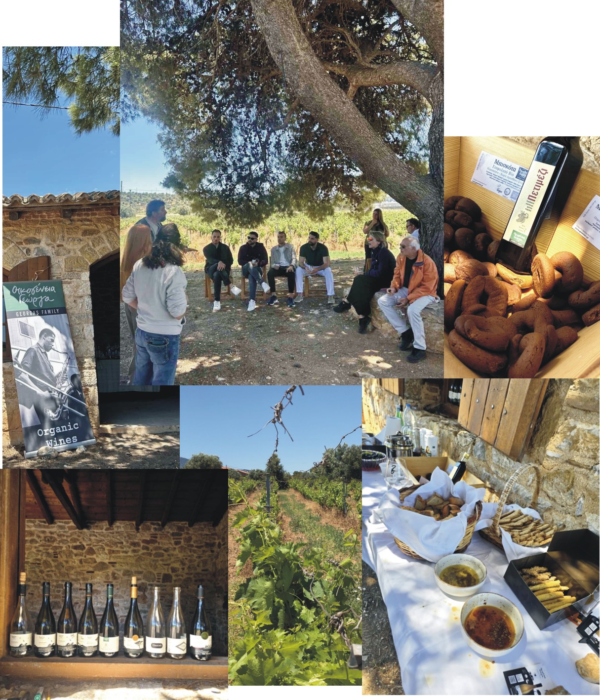 τις ιδιαιτερότητες τού βιολογικού αμπελιού. Κάτω από τον μεγάλο πεύκο,