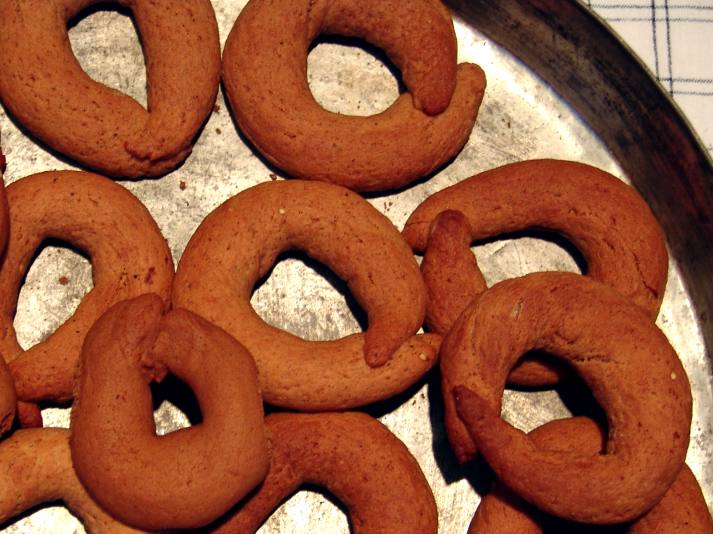 ζύμη. Πλάθουμε κουλουράκια και τα ψήνουμε στους 180ο για 25λεπτά.